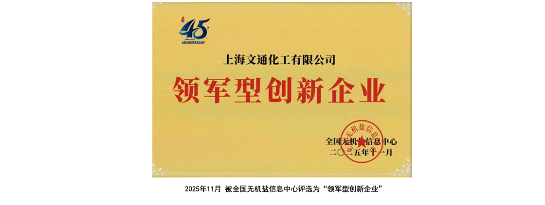 2025年11月 上海文通化工有限公司被全國無機鹽信息中心評選為“領軍型創(chuàng)新企業(yè)”
